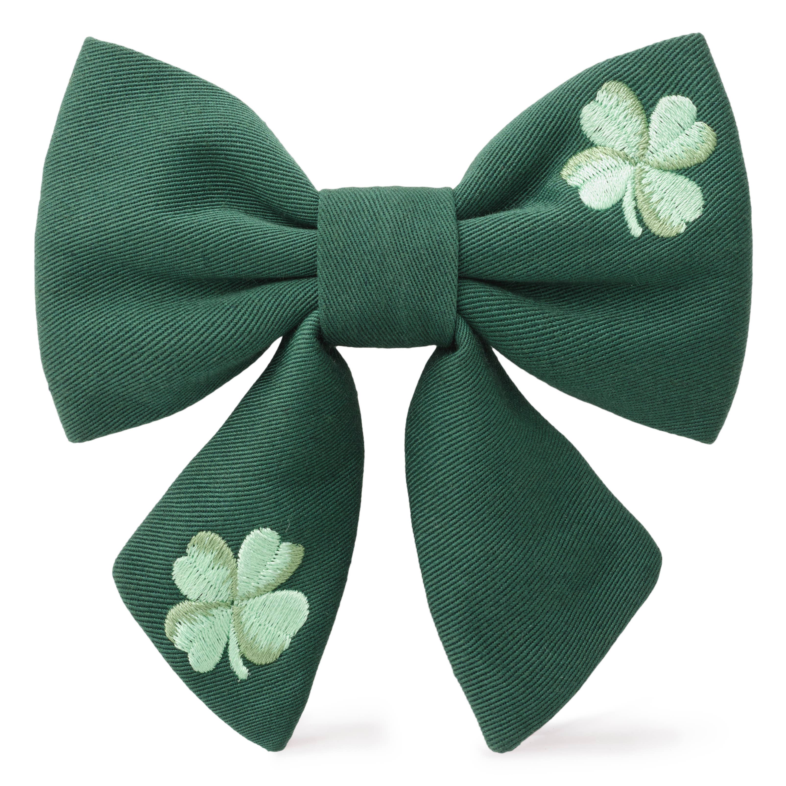 Embroidered clovers on a deep green background make this lady bow collar feel lucky year-round.