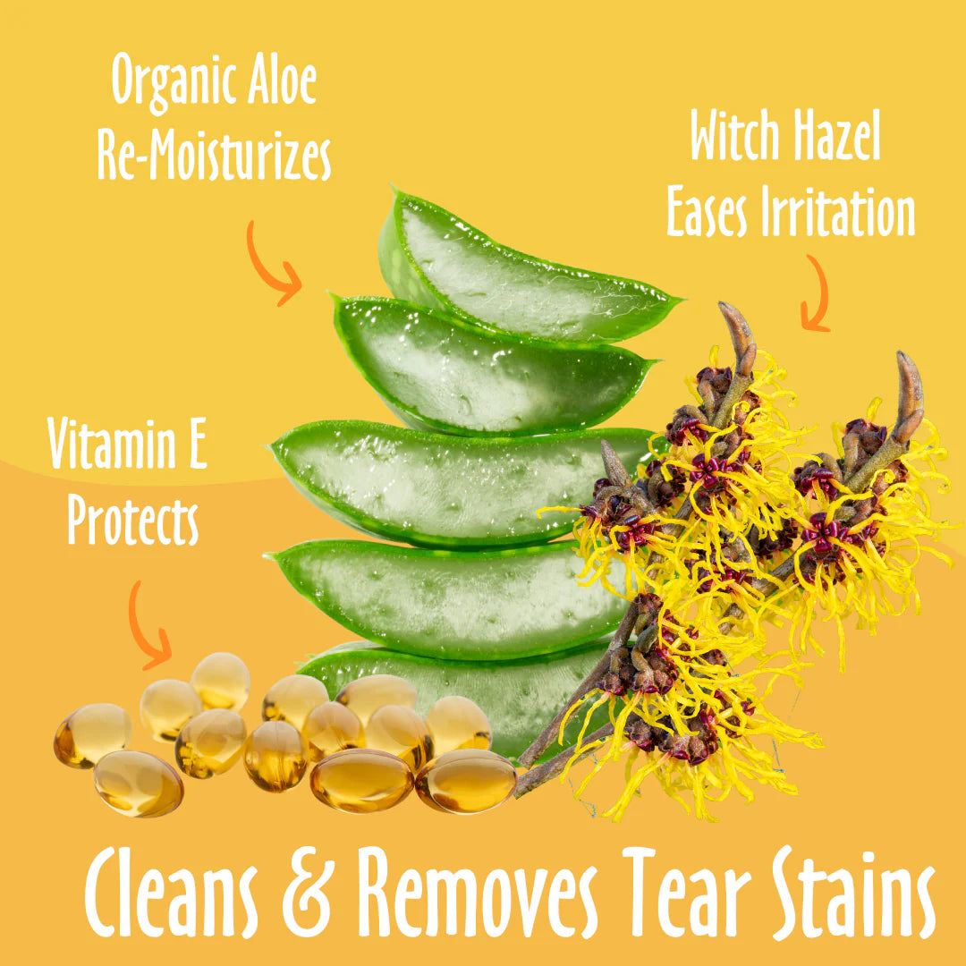 These plant-based eye wipes are hypoallergenic, fragrance free, and alcohol free. Safe for all animals over 6 weeks old.