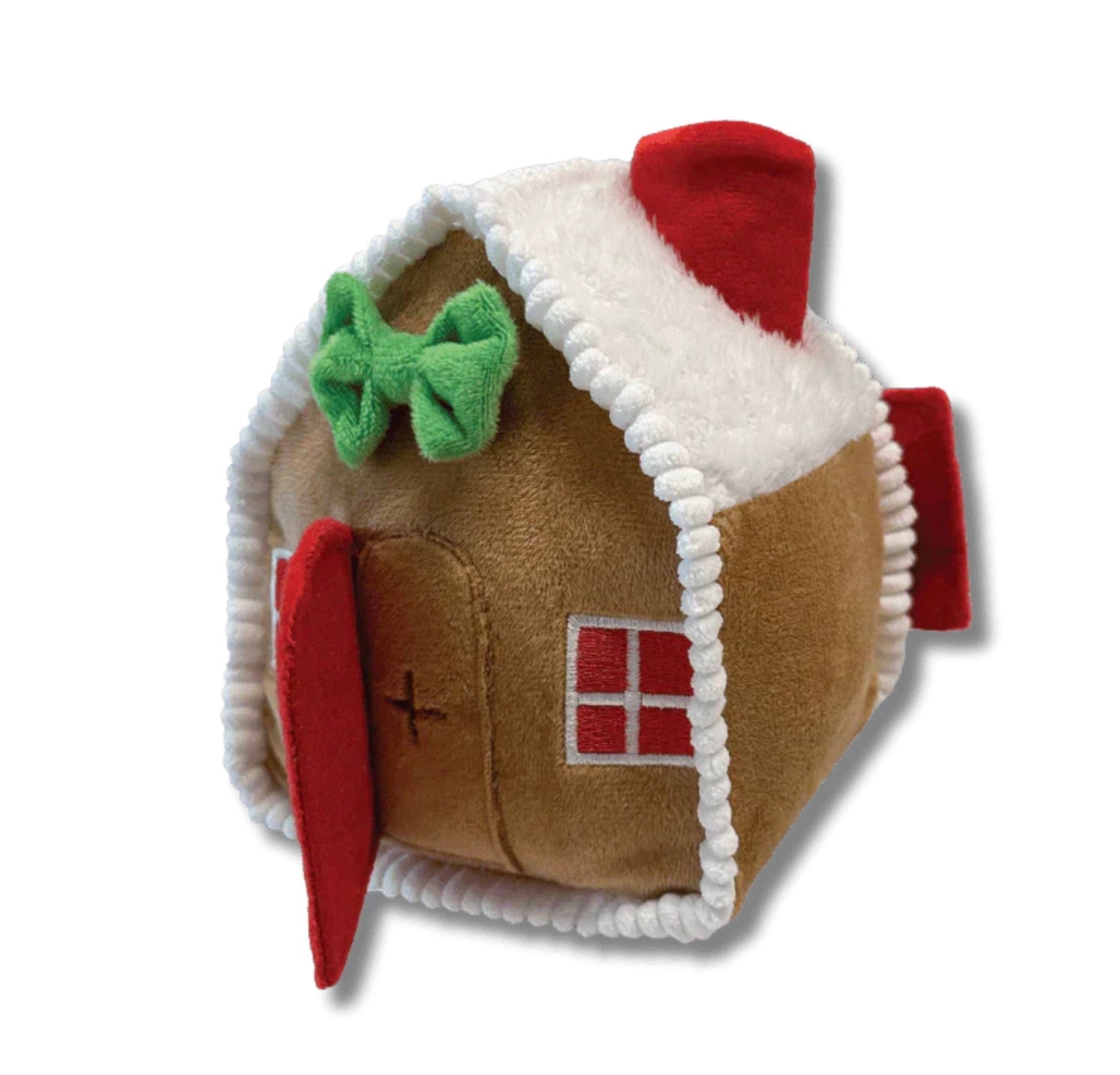 This sweet playhouse house features hidden treat pockets, a mix of different plush textures as well a squeaker to stimulate all five senses.