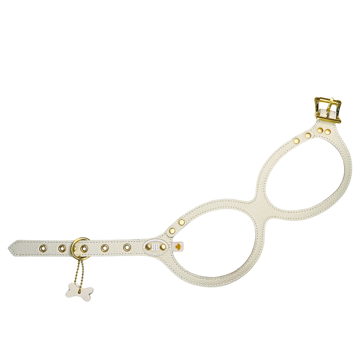 This classic cream colored harness with golden hardware, will look have your furbaby looking effortlessly chic, while staying safe and comfortable.