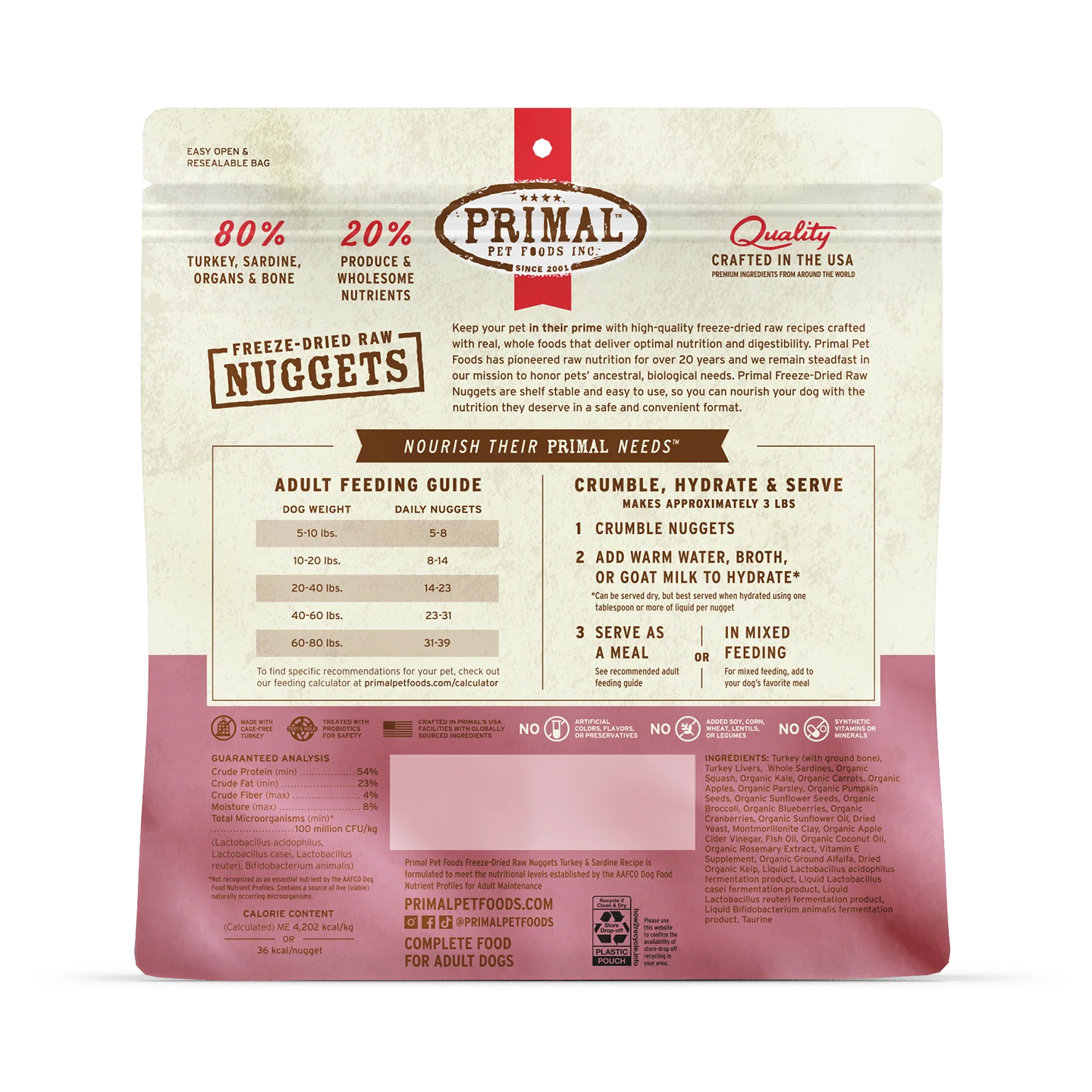 Give your pup the nourishment nature intended with Primal’s Freeze-Dried Raw Turkey & Sardine Formula. Crafted with cage-free turkey, wild-caught sardines, wholesome organs, and certified organic fruits and vegetables, this complete and balanced recipe delivers biologically appropriate nutrition in every bite.