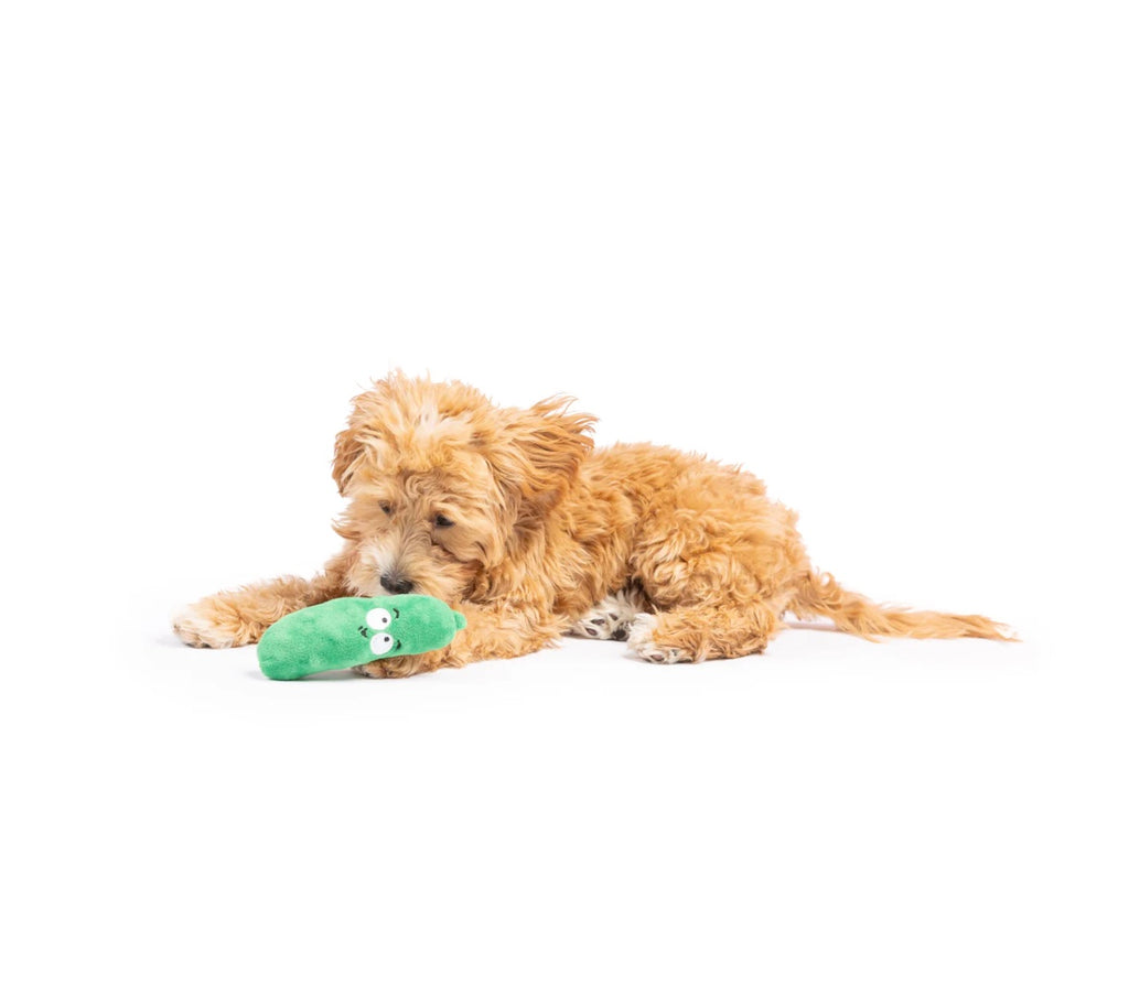 Your pup will have a "dill-ightful" time playing with this tasty, durable and playful pickle toy!