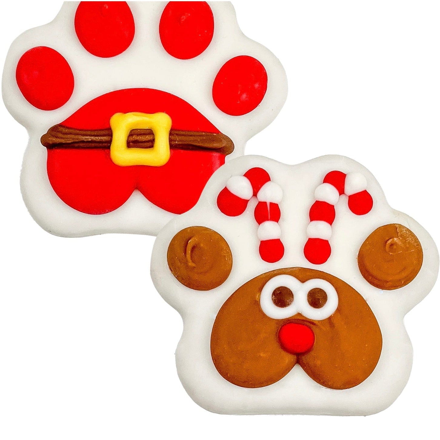 Treat your furry friend to a delicious, paw-shaped cookie, in festive reindeer and Santa designs!